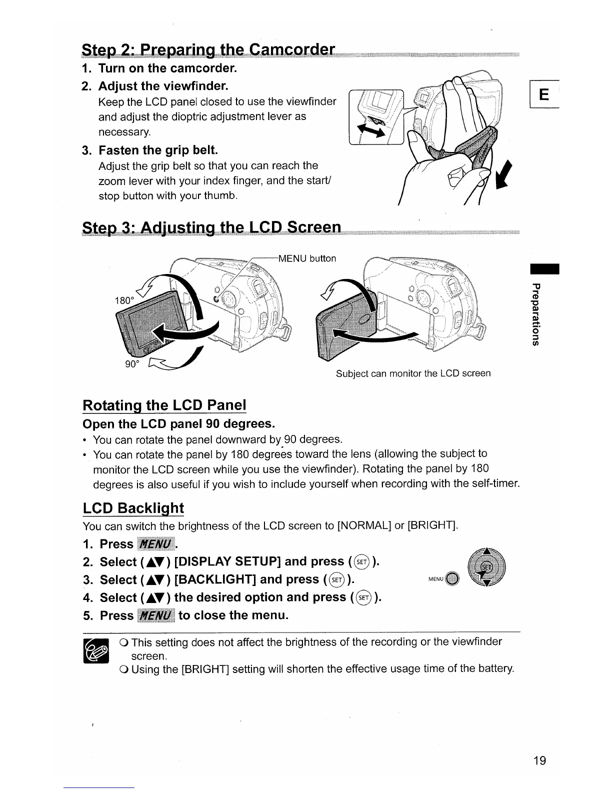 o Using the [BRIGHT] setting will shorten the effective usage time