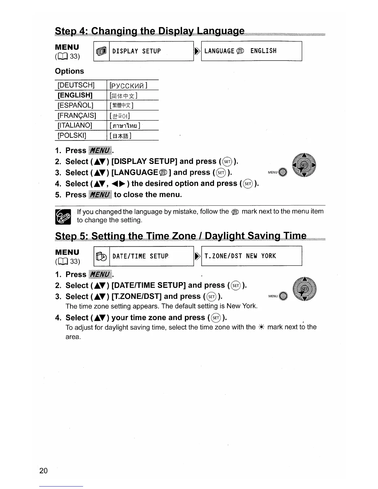 If you changed the language by mistake, follow the ® mark next to the menu item