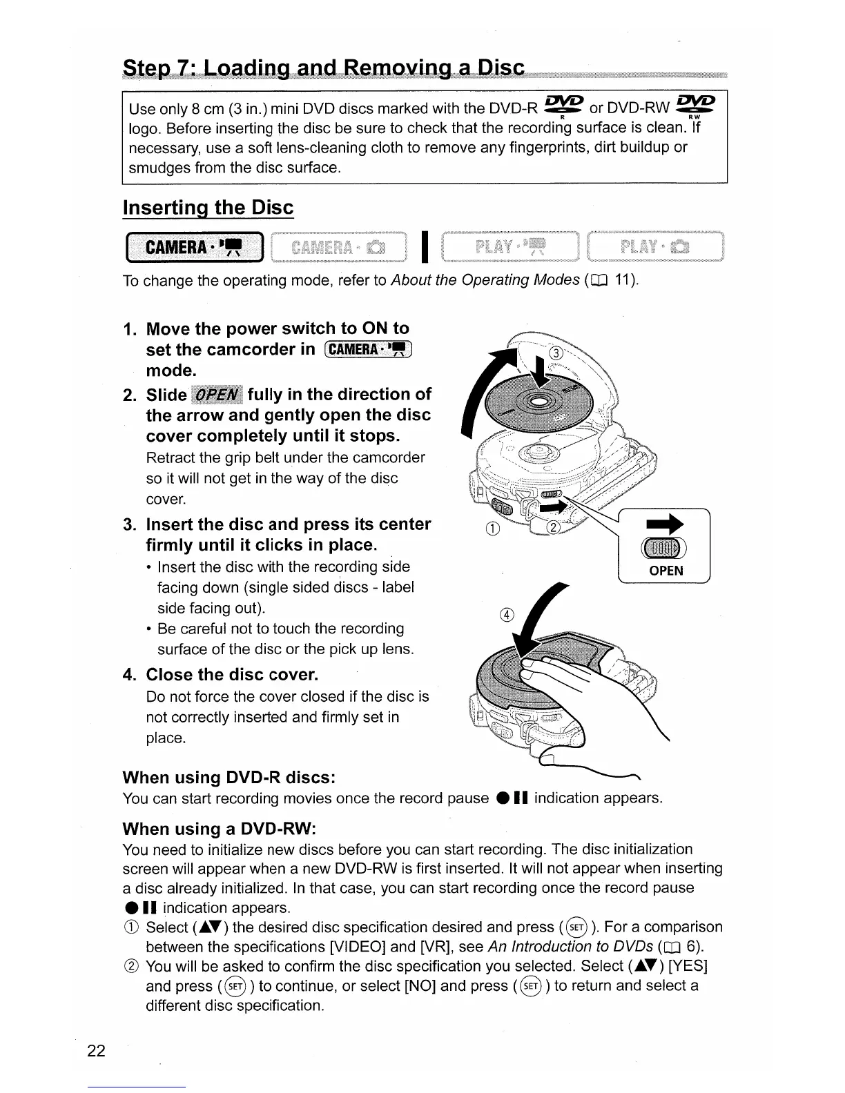 Use only 8 cm (3 in.) mini DVD discs marked with the DVD-R