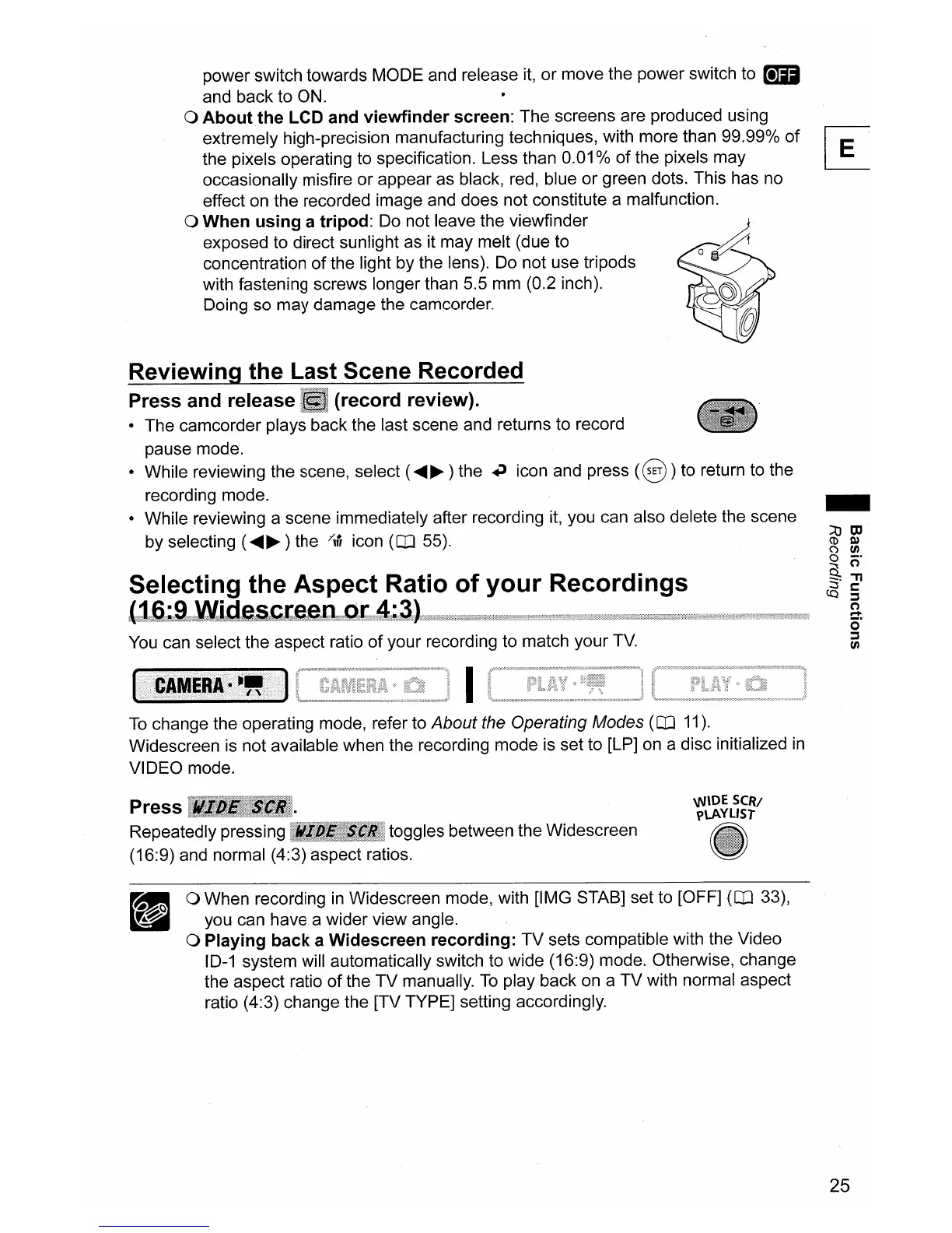 Widescreen mode, with [IMG STAB] set to [OFF]