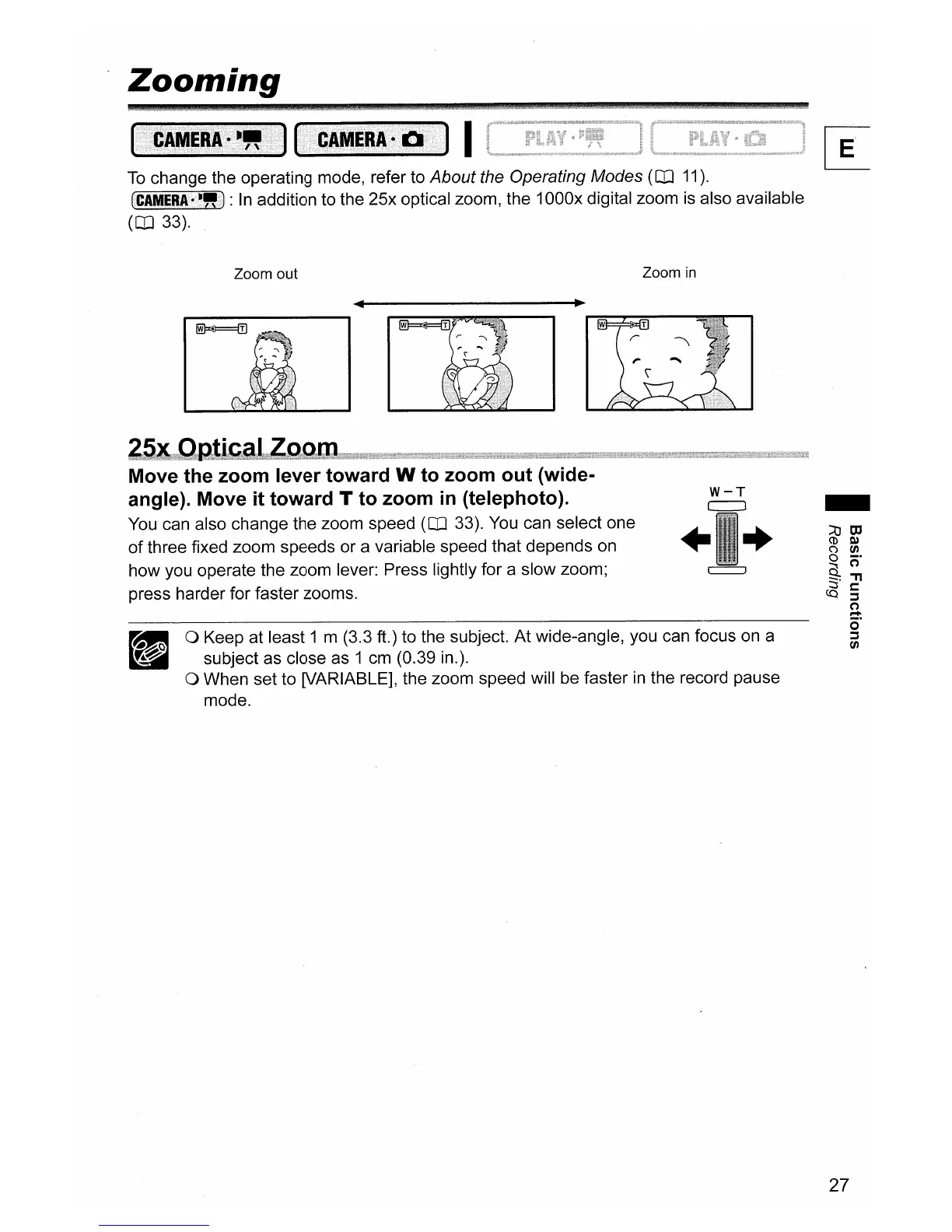 how you operate the zoom lever: Press lightly for a slow zoom;