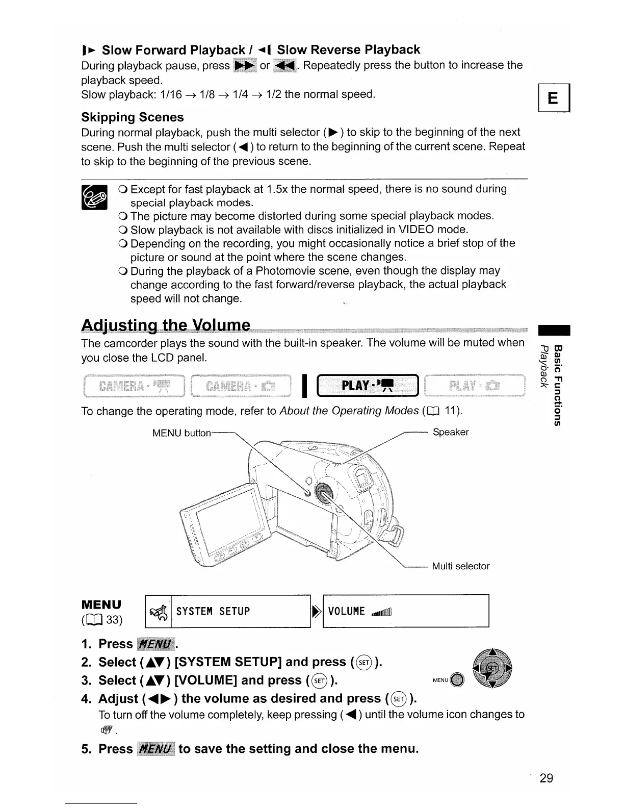 The camcorder plays the sound with the built-in speaker. The volume will be muted when