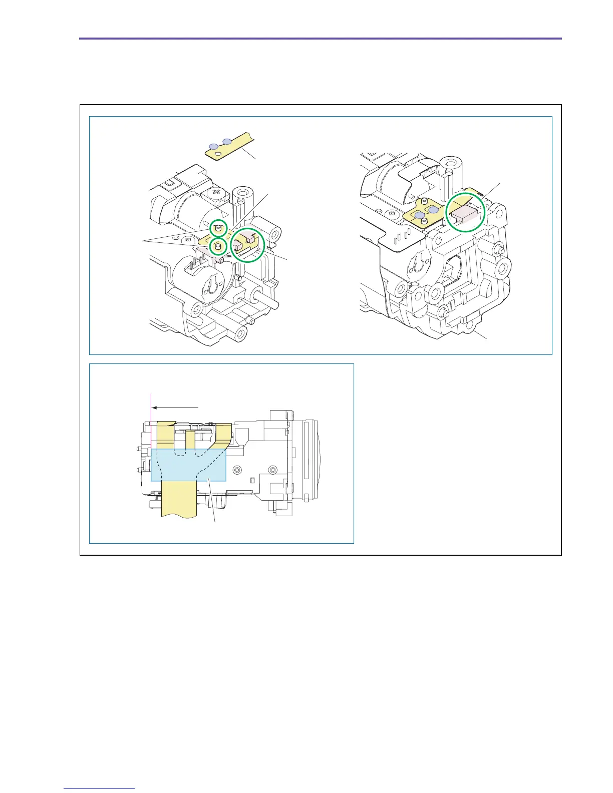 (1) After engaging the VCM FPC with the groove A and dowel B, provide soldering. Then, mount the IRIS MAIN FPC so that it is