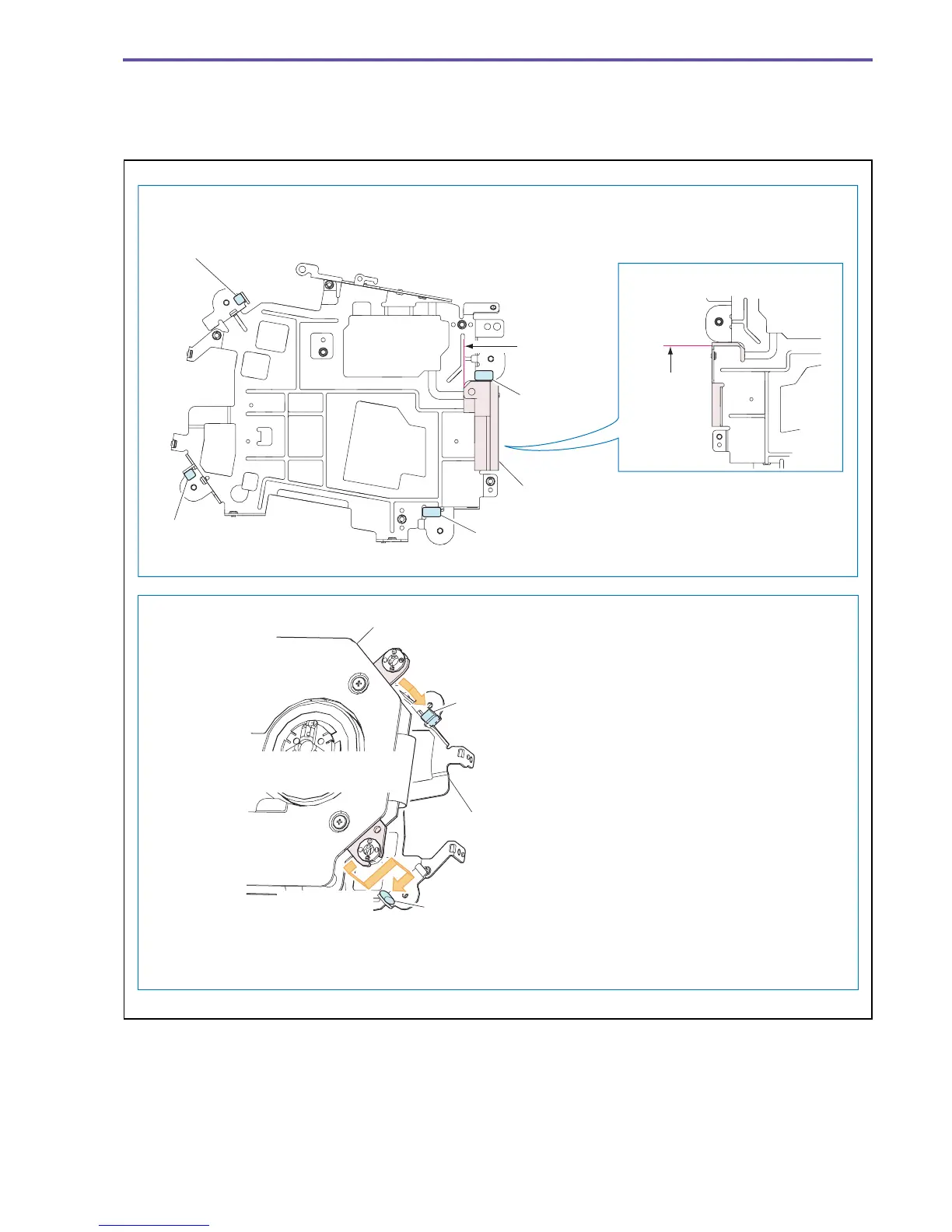 (6) Do not reuse the step screws (h × 4) securing the Main Frame, because its tip is applied with adhesive for the prevention of
