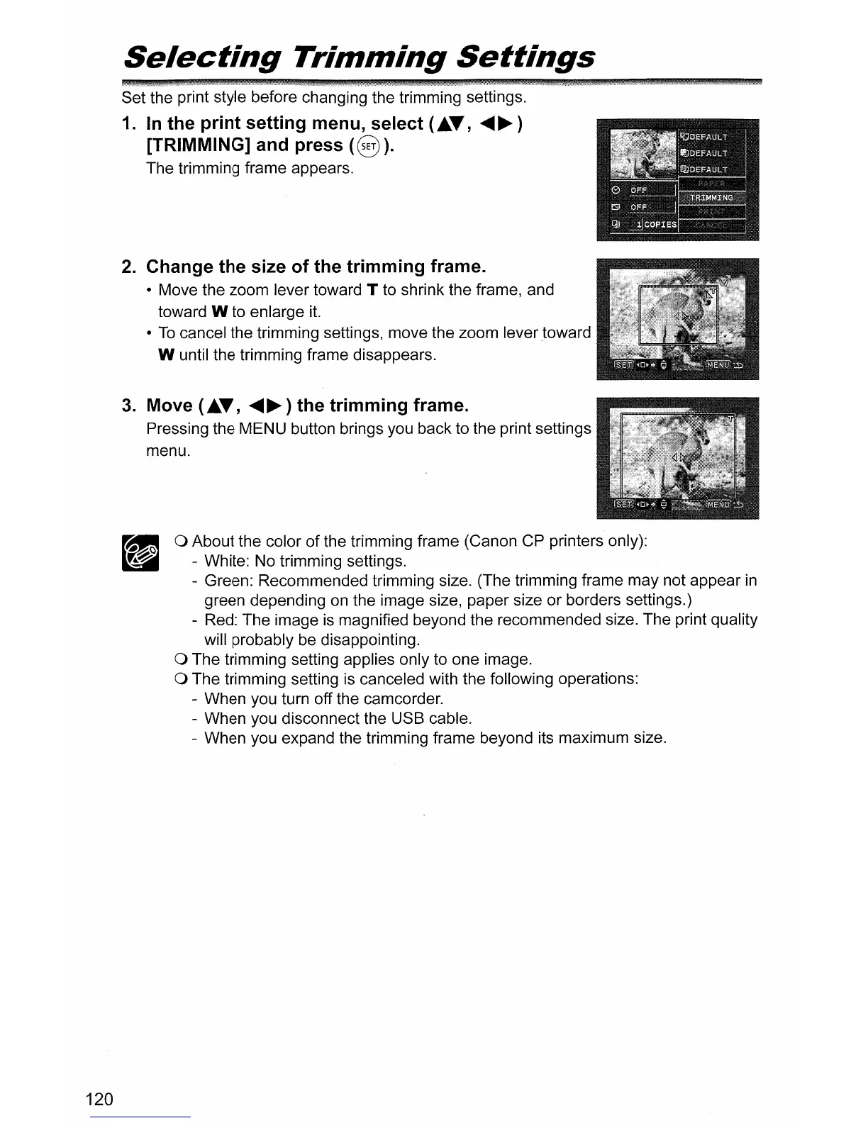 - Green: Recommended trimming size. (The trimming frame may not appear