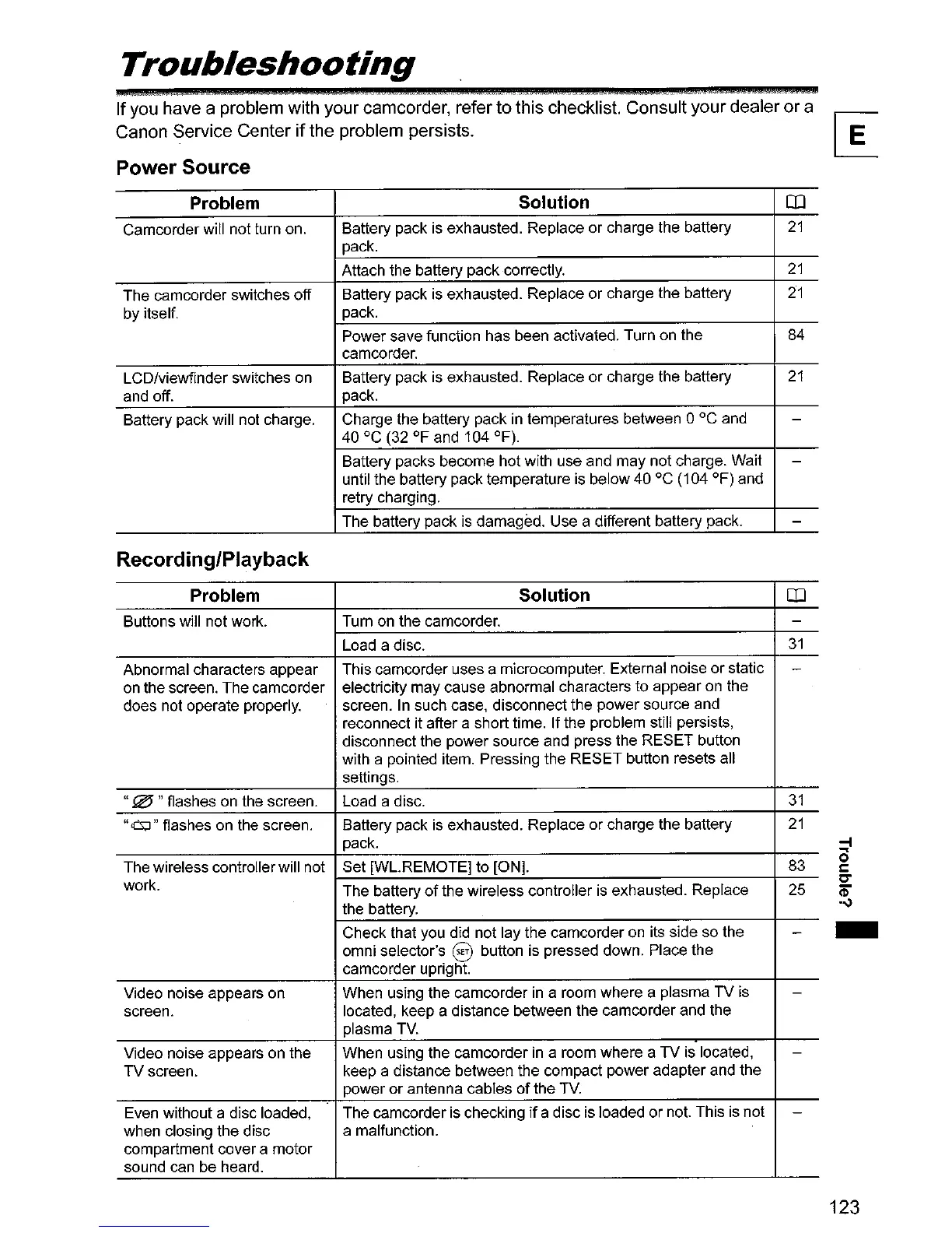 If you have a problem with your camcorder, refer to this checklist. Consult your dealeror a
