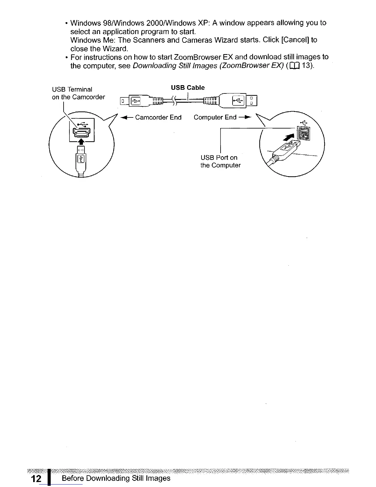 • For instructions on how to start ZoomBrowser EX and download still images to