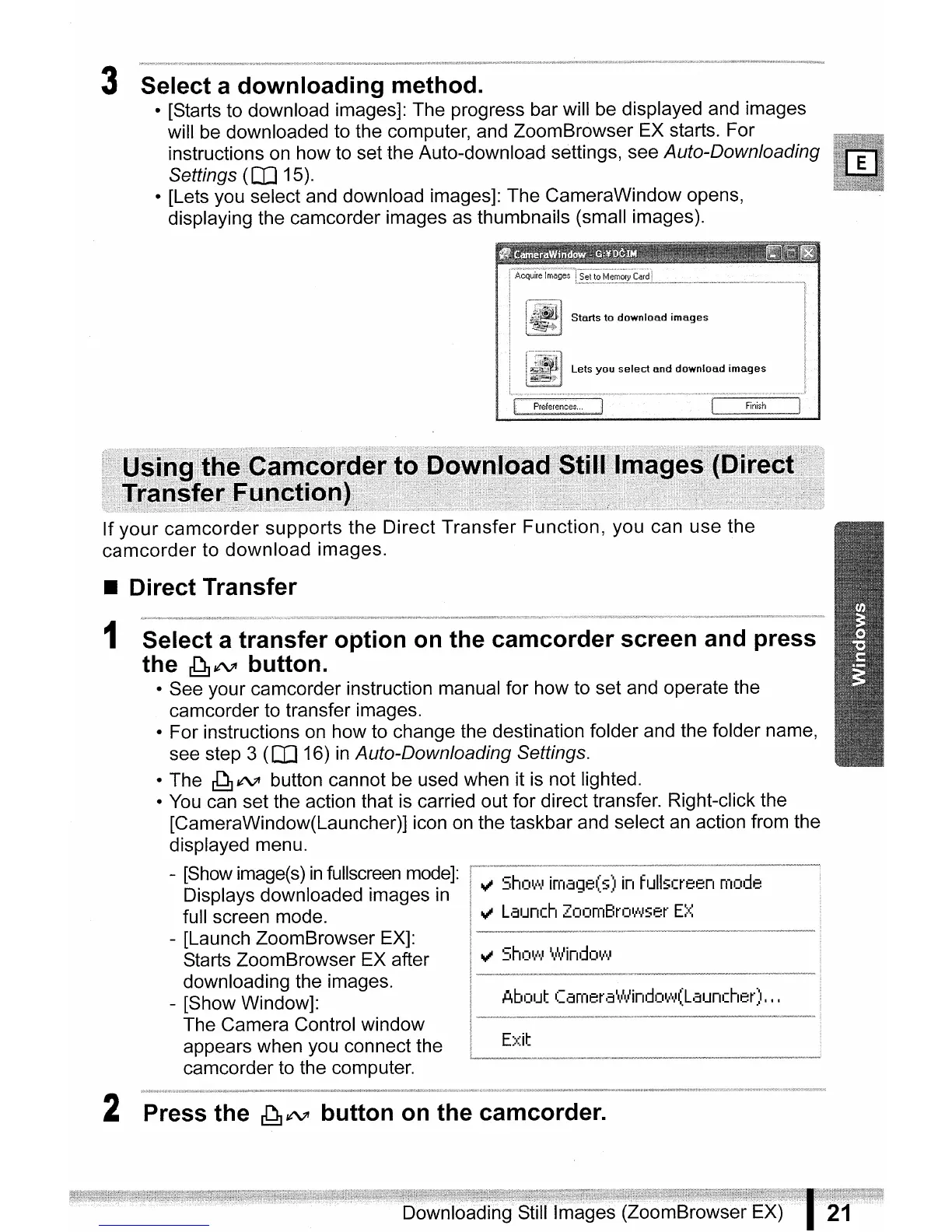 [CameraWindow(Launcher)] icon on the taskbar and select an action from the