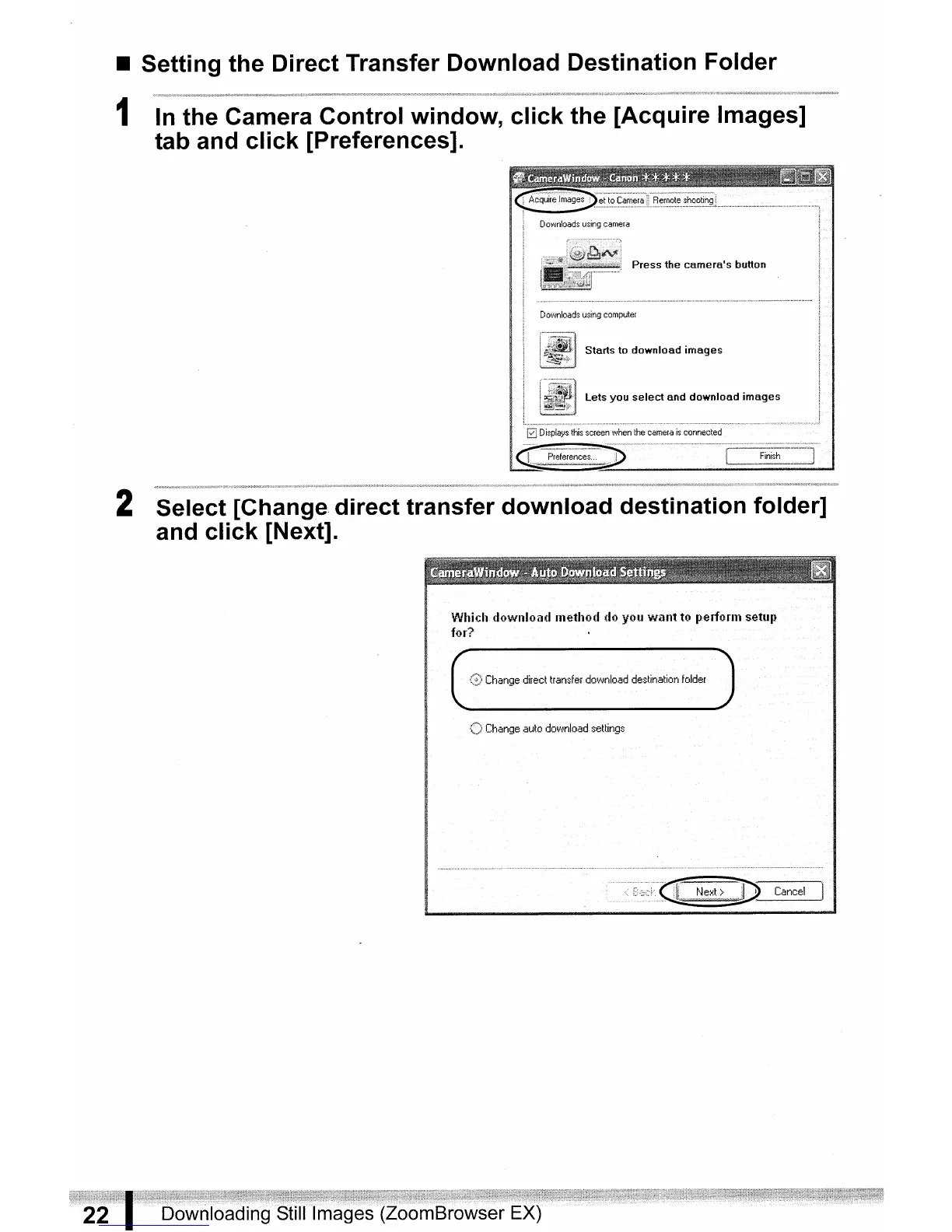 Canon DC20 - Setting the Direct Transfer Download Destination Folder