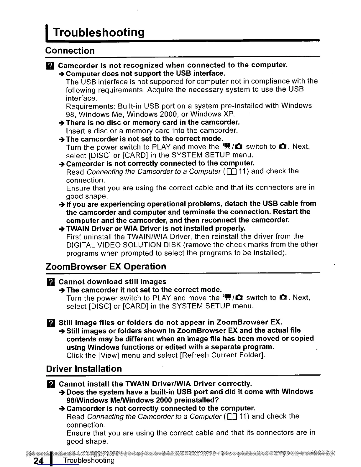 computer and the camcorder, and then reconnect the camcorder.