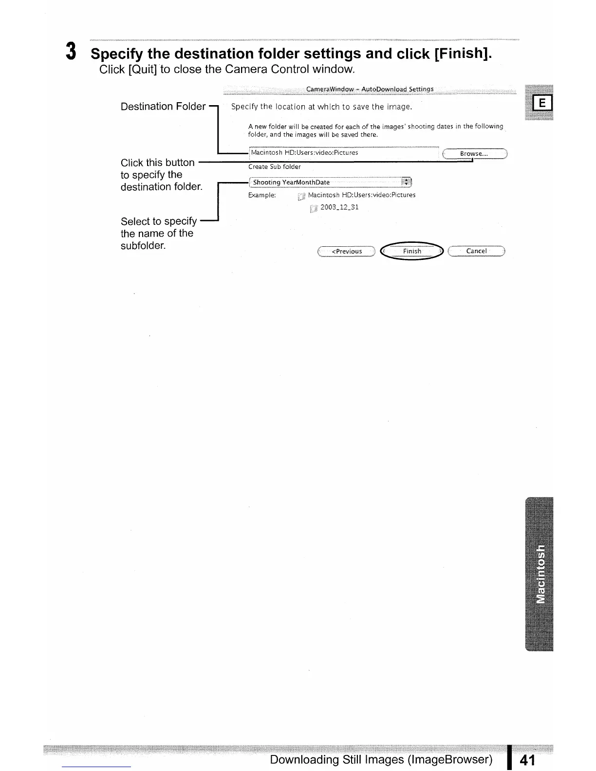 3 Specify the destination folder settings and click [Finish].