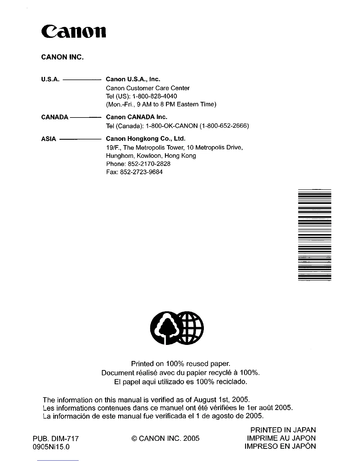 (Canada): 1-800-0K-CANON (1-800-652-2666)