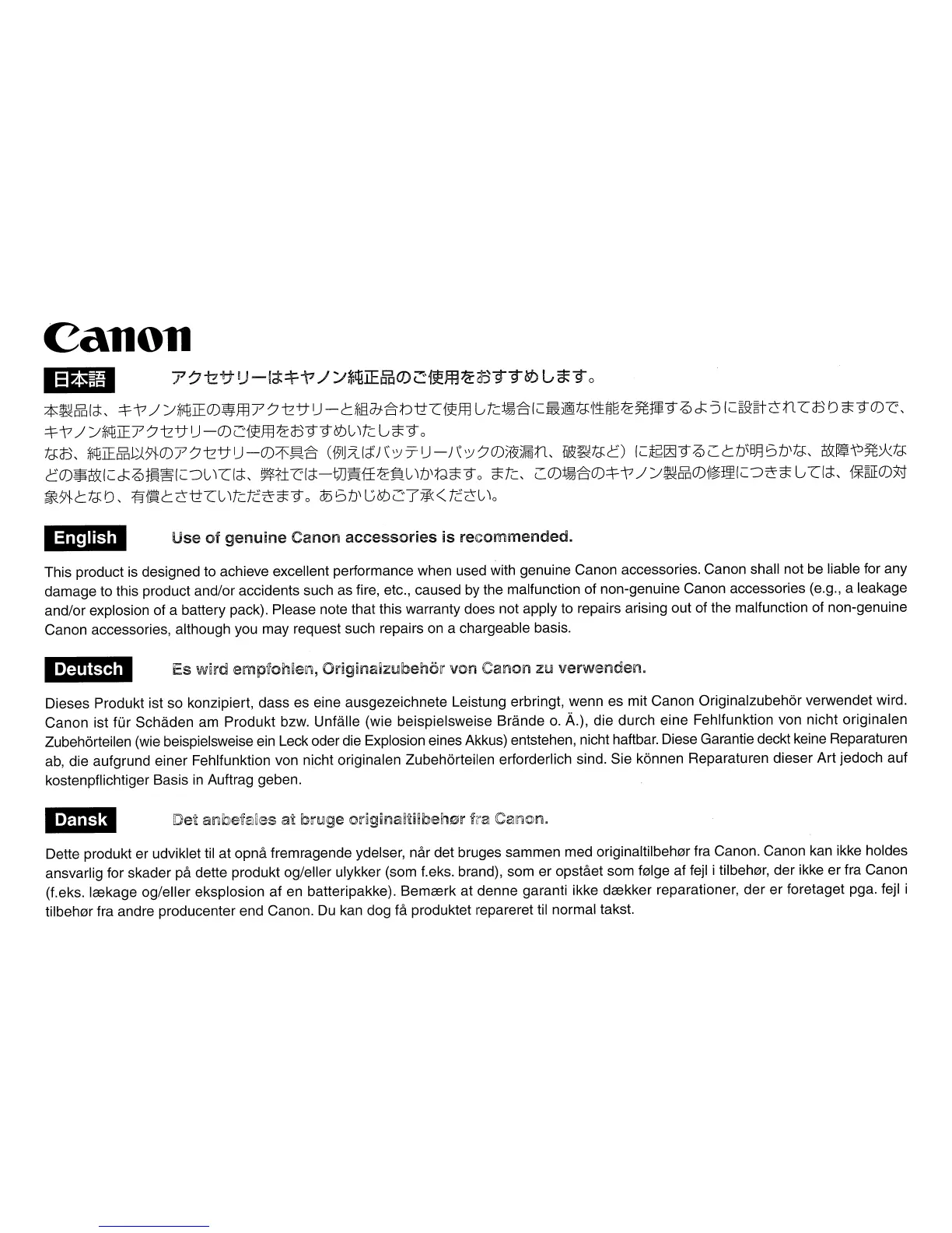 Dette produkt er udviklet til at opna fremragende ydelser, nar det bruges sammen med originaltilbeh0r fra Canon. Canon