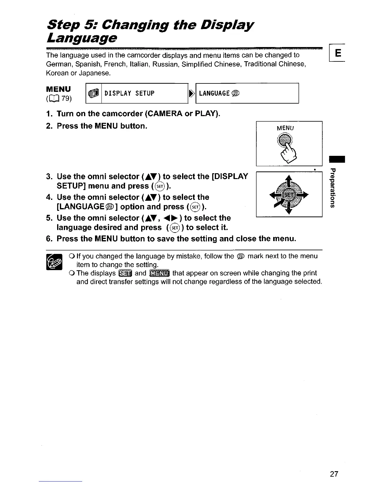 o If you changed the language by mistake, follow the ® mark next to the menu