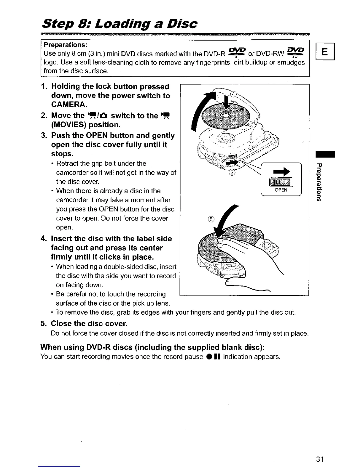 Use only 8 cm (3 in.) mini DVD discs marked with the DVD-R