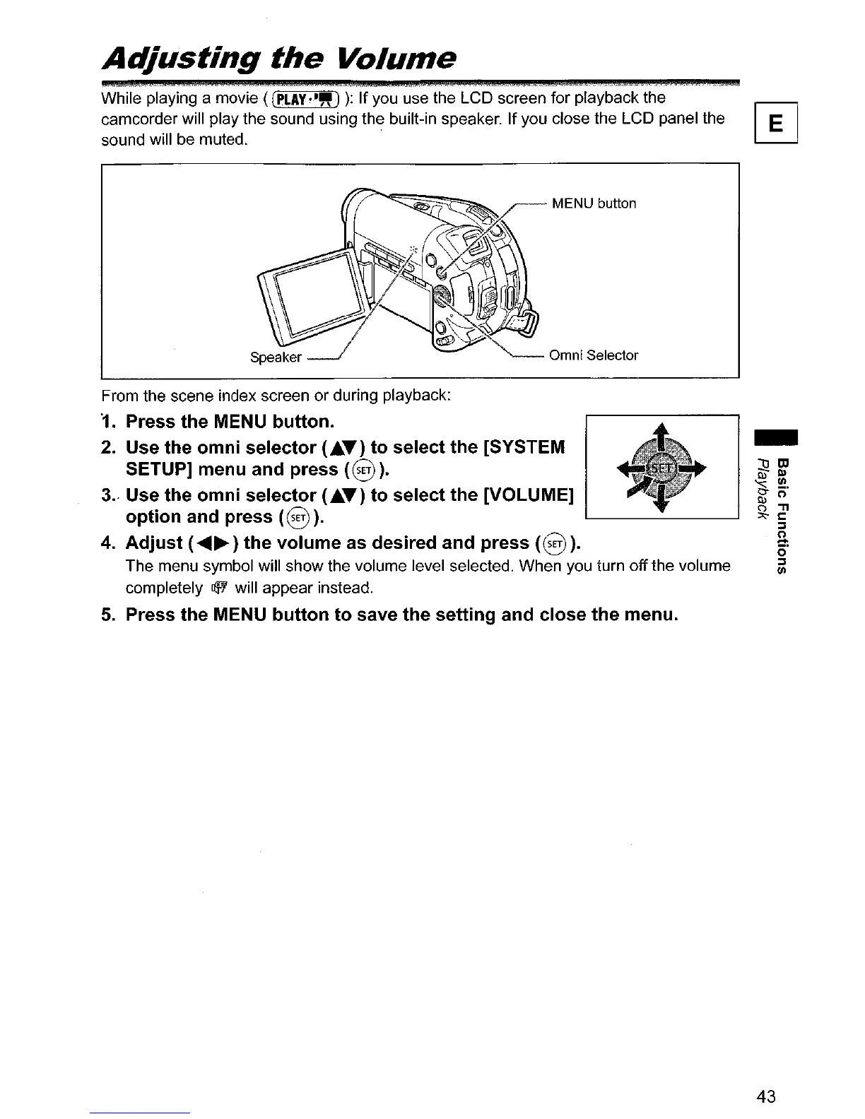 Canon DC20 - Adjusting the Volume