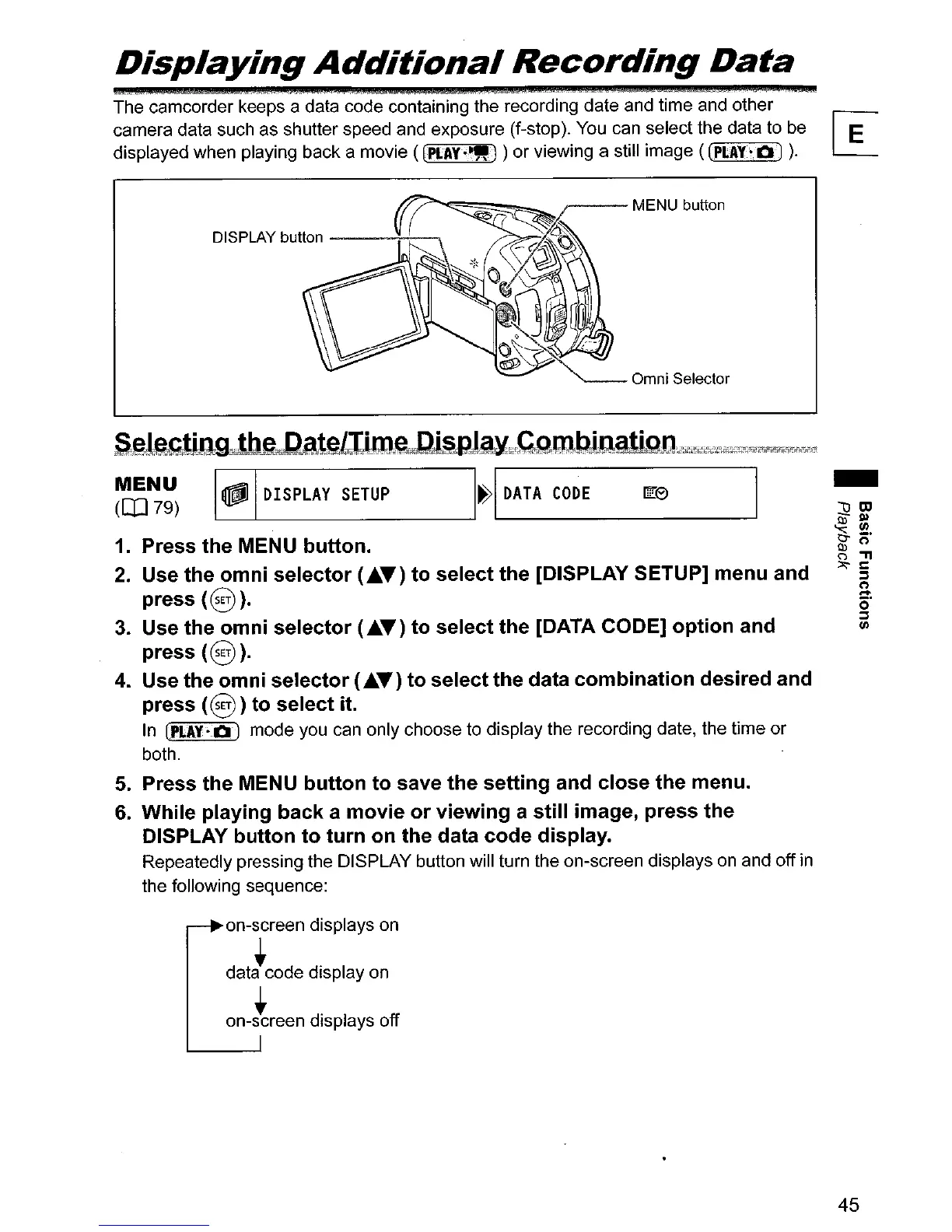 -The camcorder keeps a data code containing the recording date and time and other