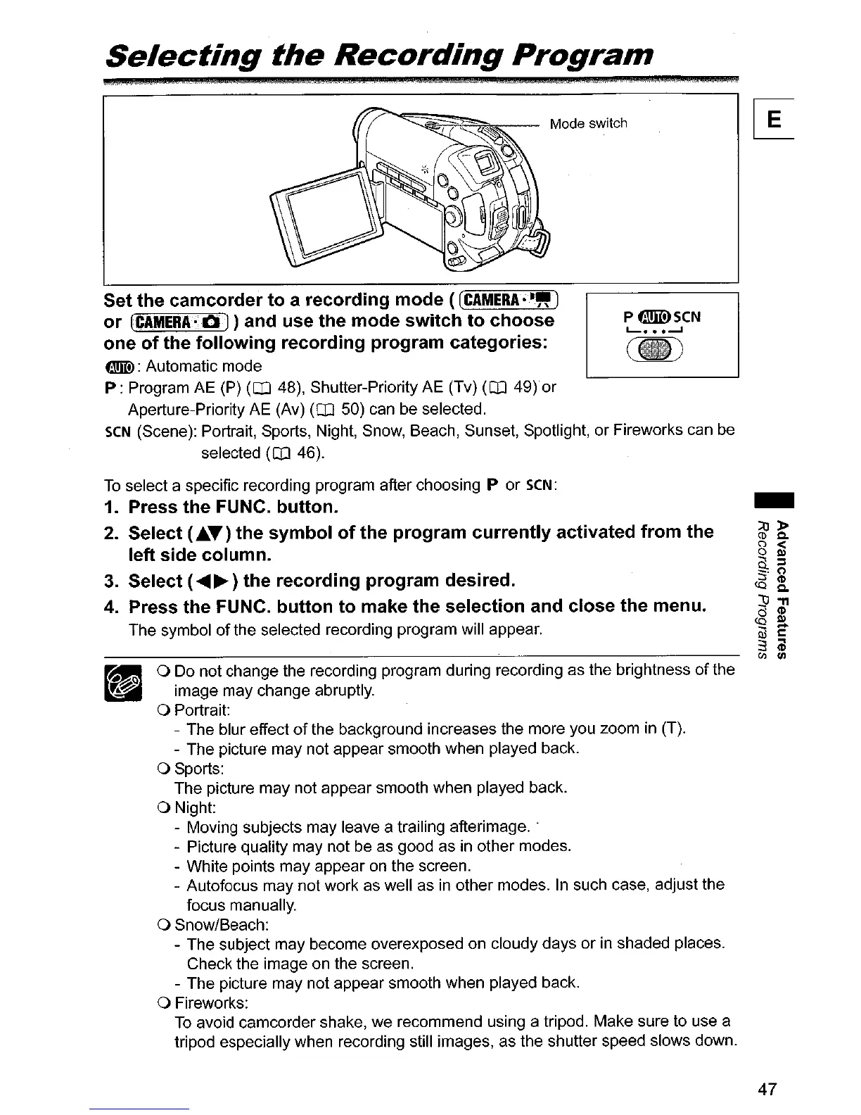 avoid camcorder shake, we recommend using a tripod. Make sure to use a