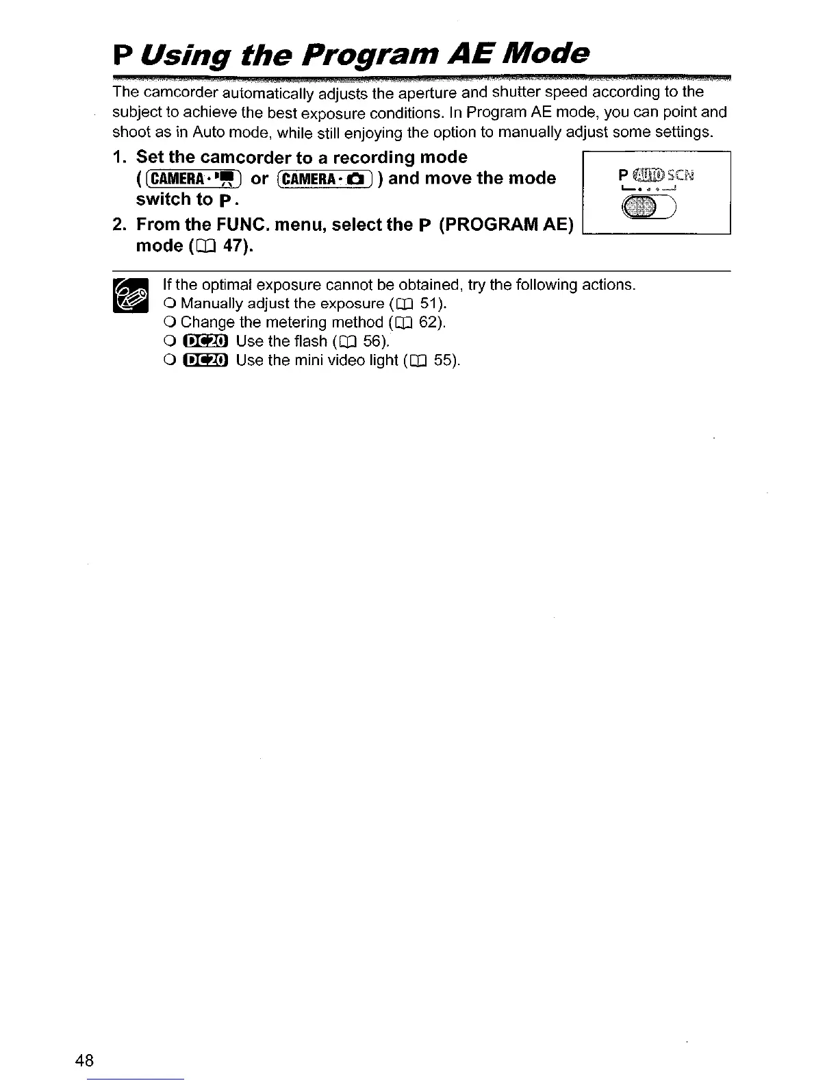 From the FUNC. menu, select the P (PROGRAM AE)