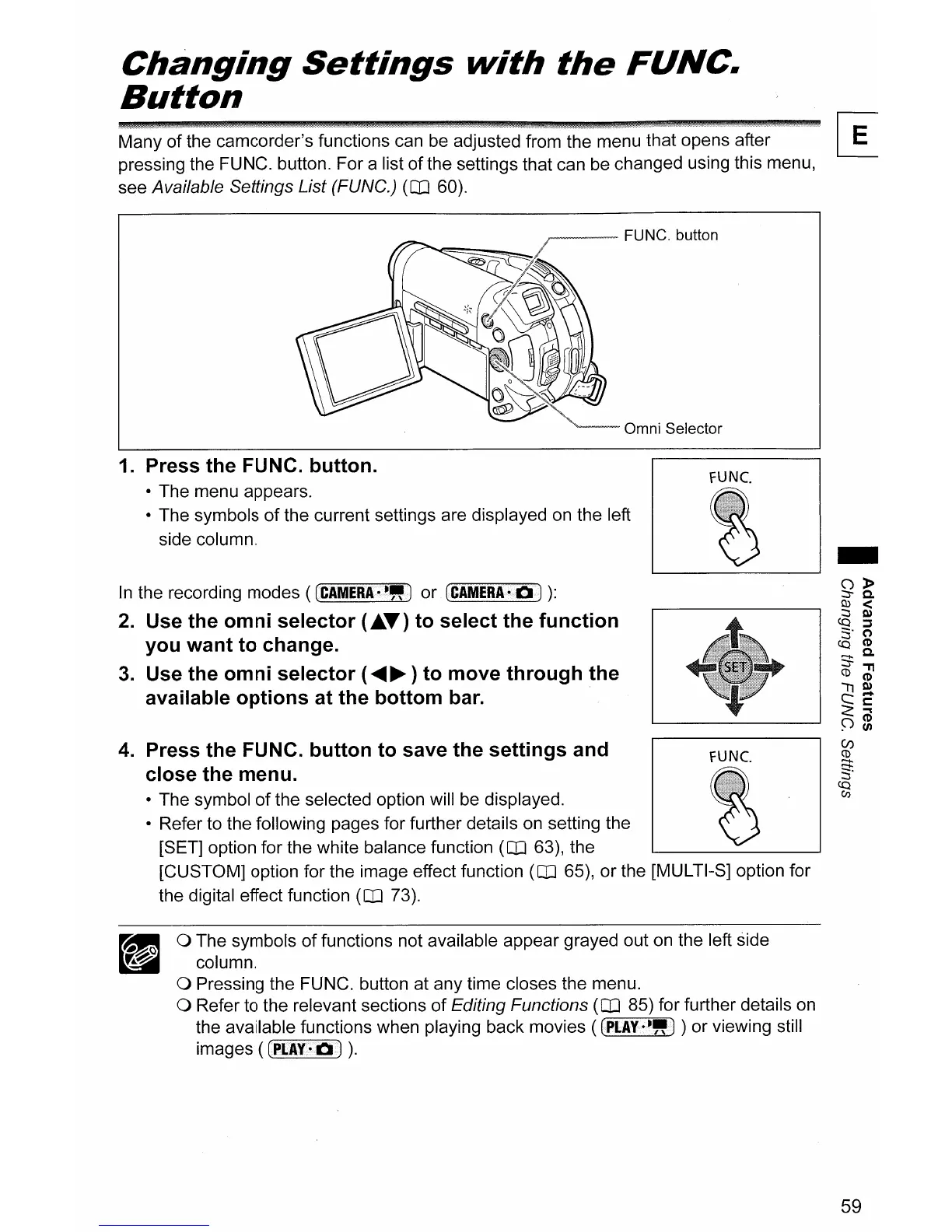 a Pressing the FUNC. button at any time closes the menu.