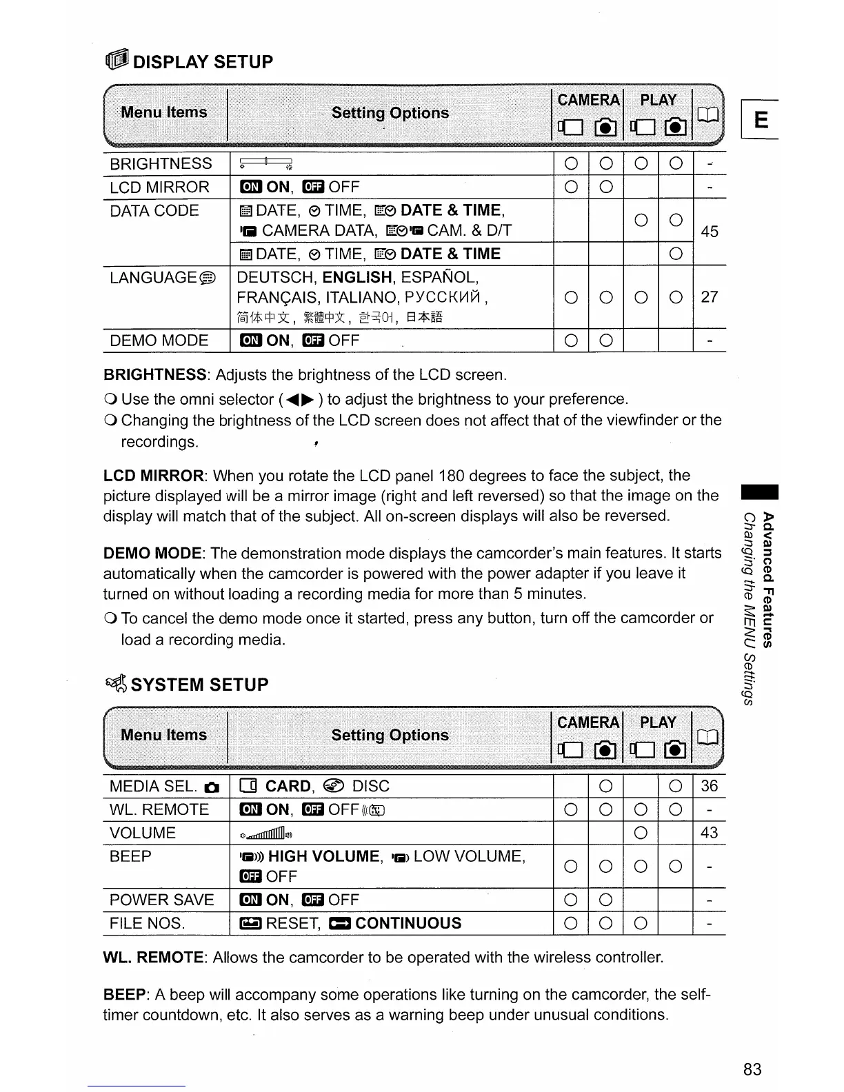 BEEP: A beep will accompany some operations like turning on the camcorder, the self-