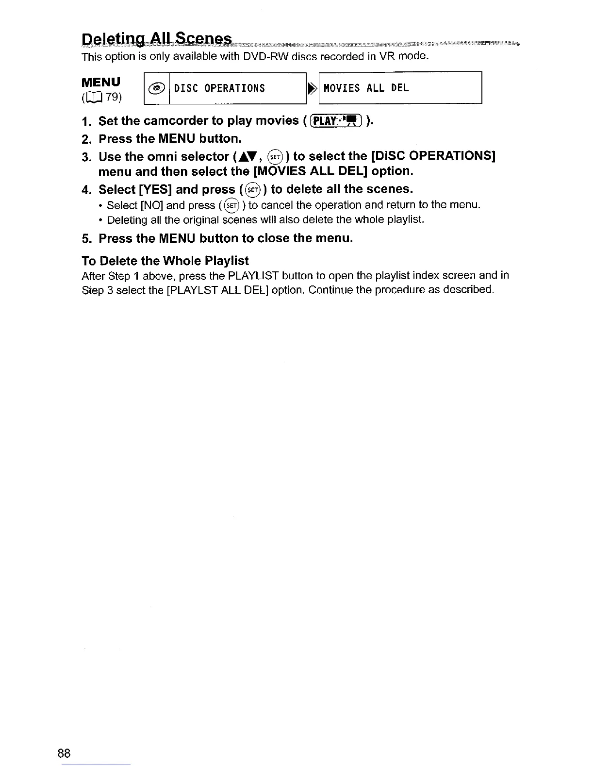 Step 3 select the [PLAYLST ALL DEL} option. Continue the procedure as described.