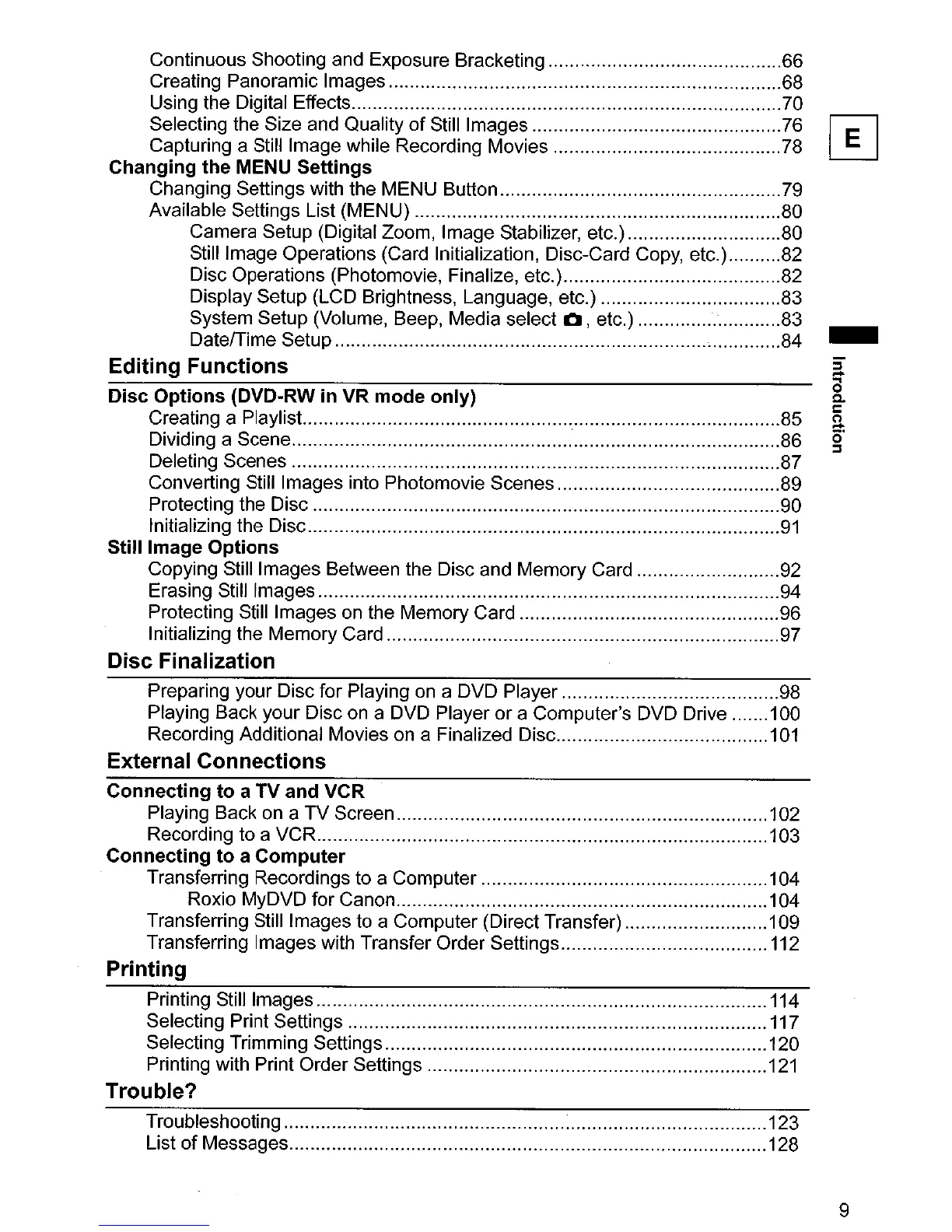 Disc Operations (Photomovie, Finalize, etc.) 82