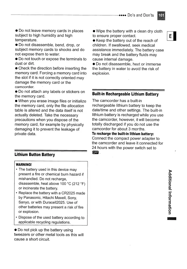 • Do not leave memory cards