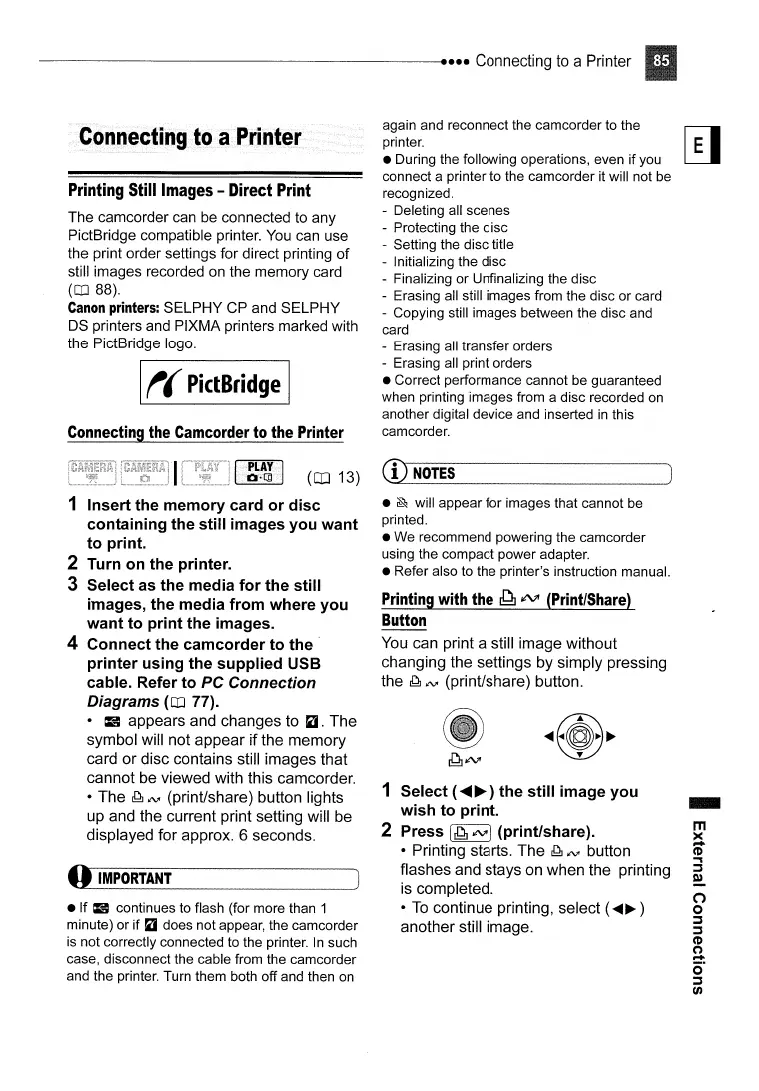 connect a printer to the camcorder it will not be