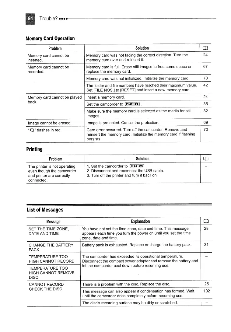 HIGH CANNOT RECORD Disconnect the compact power adapter and remove the battery and