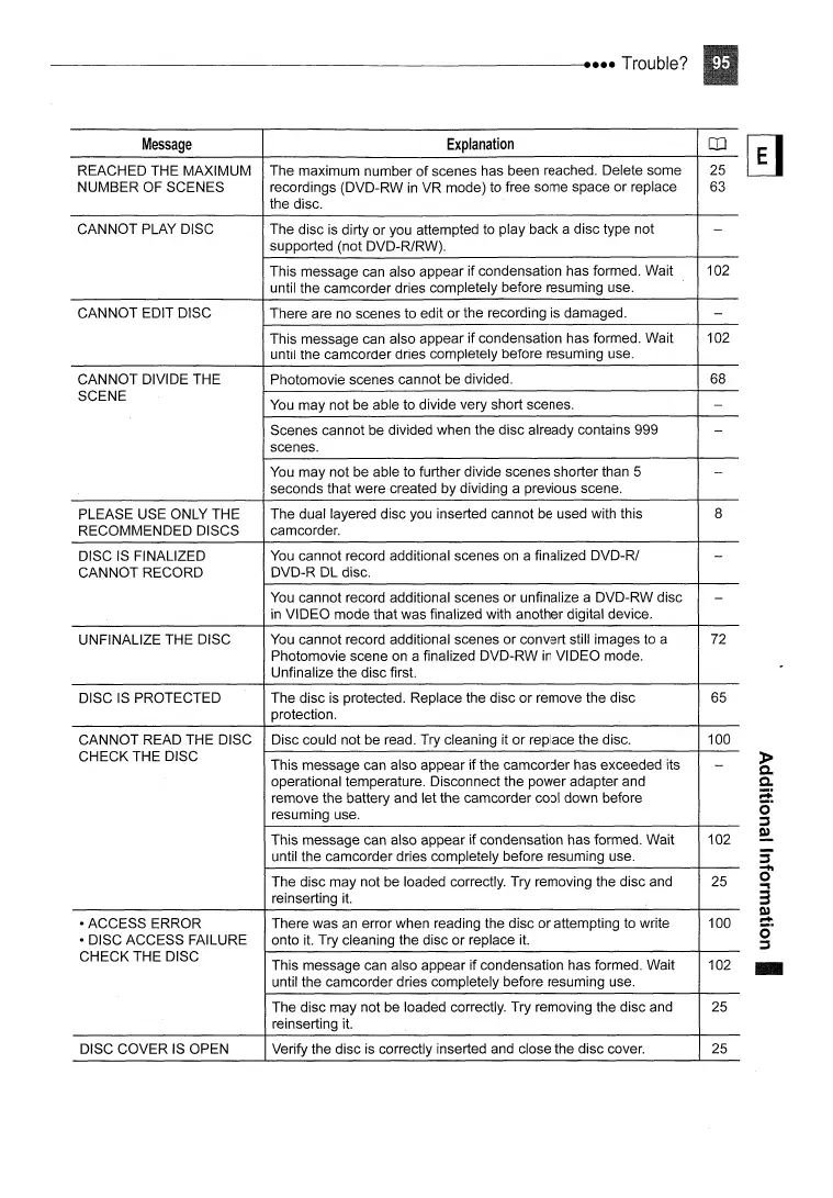 CANNOT EDIT DISC There are no scenes to edit or the recording is damaged.