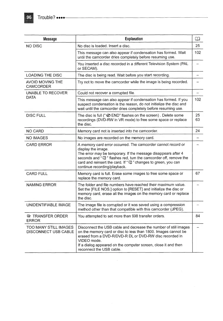 NO DISC No disc is loaded. Insert a disc. 25