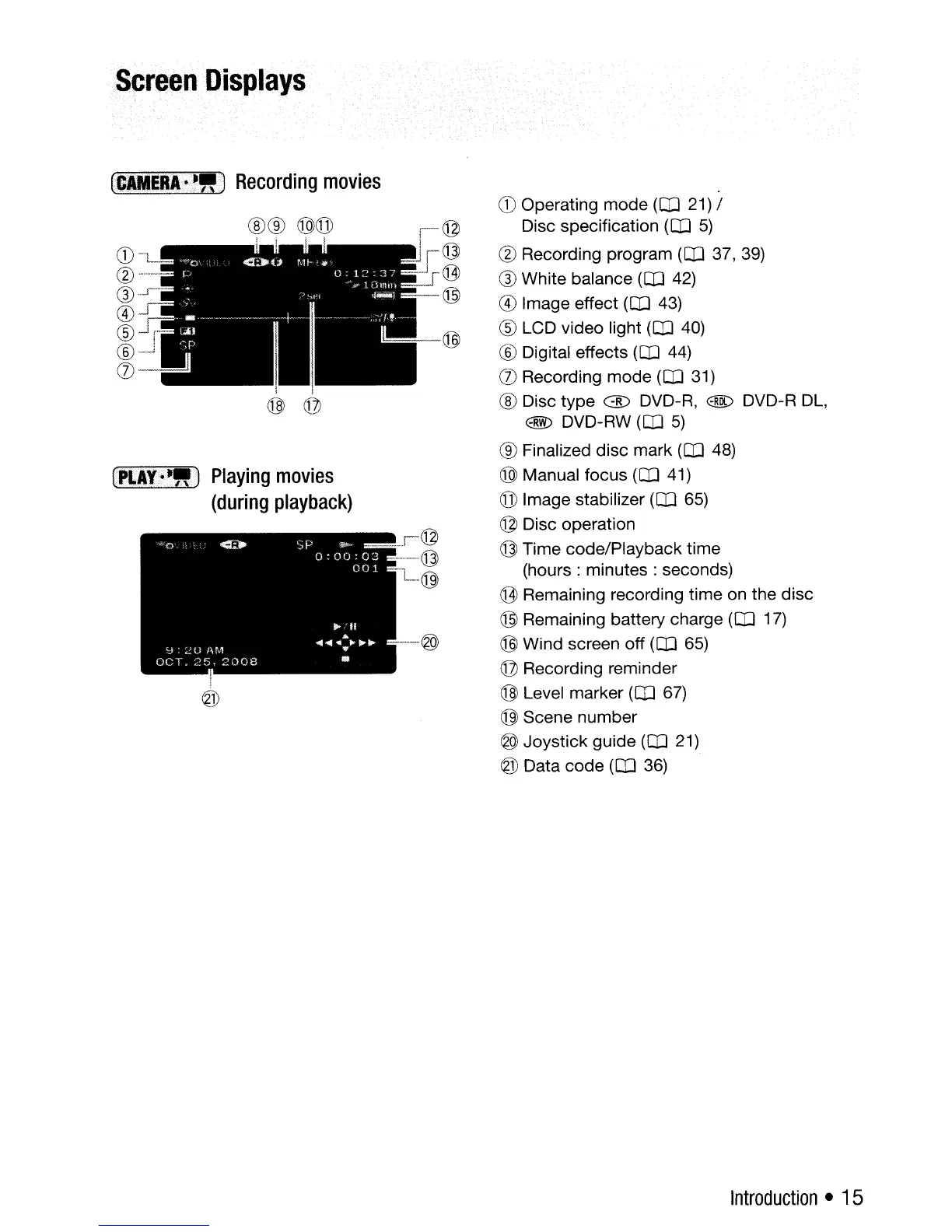 Canon DC310 - Understanding On-Screen Displays; Recording Mode Screen Displays; Playback Mode Screen Displays
