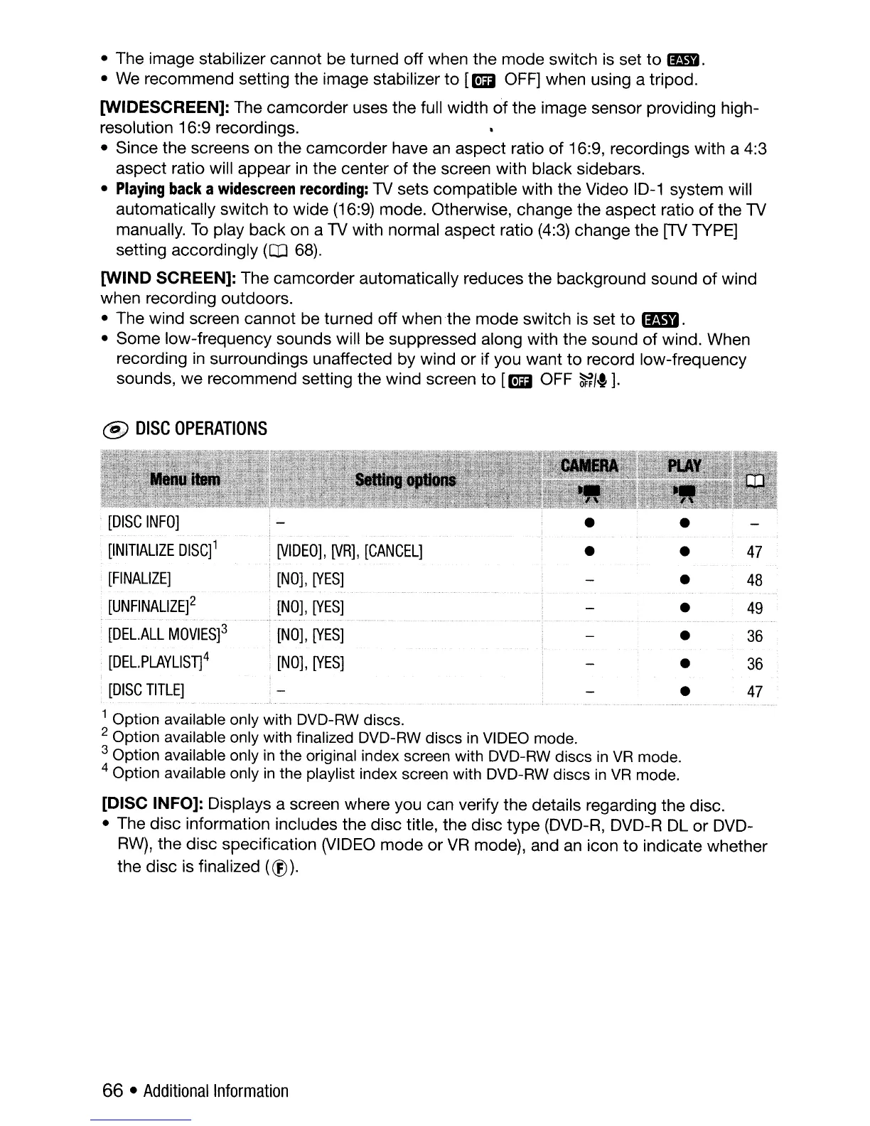 1 Option available only with DVD-RW discs.