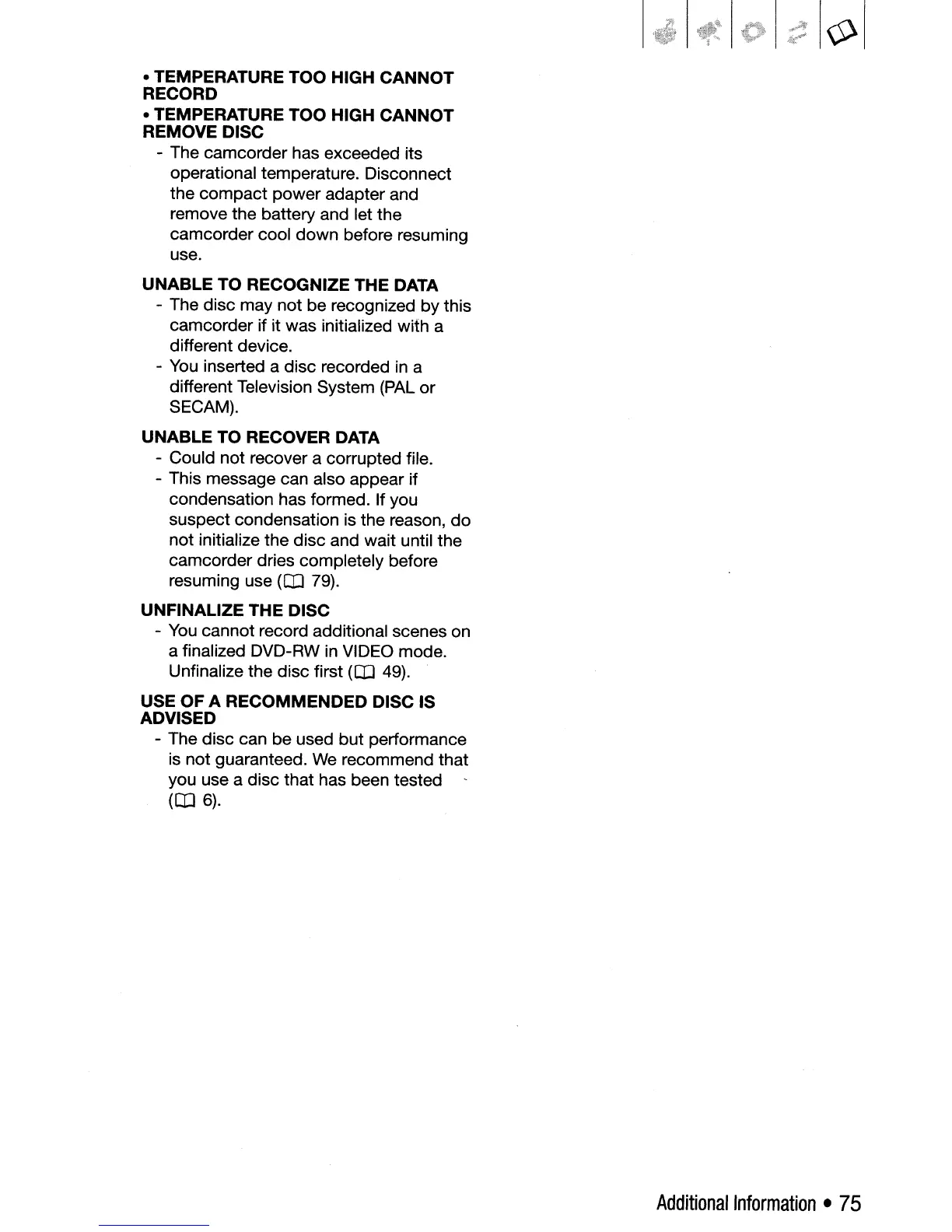 - The camcorder has exceeded its