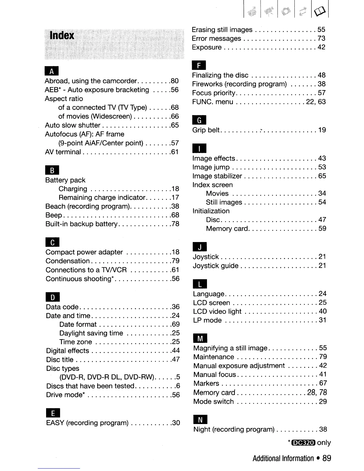Abroad, using the camcorder 80