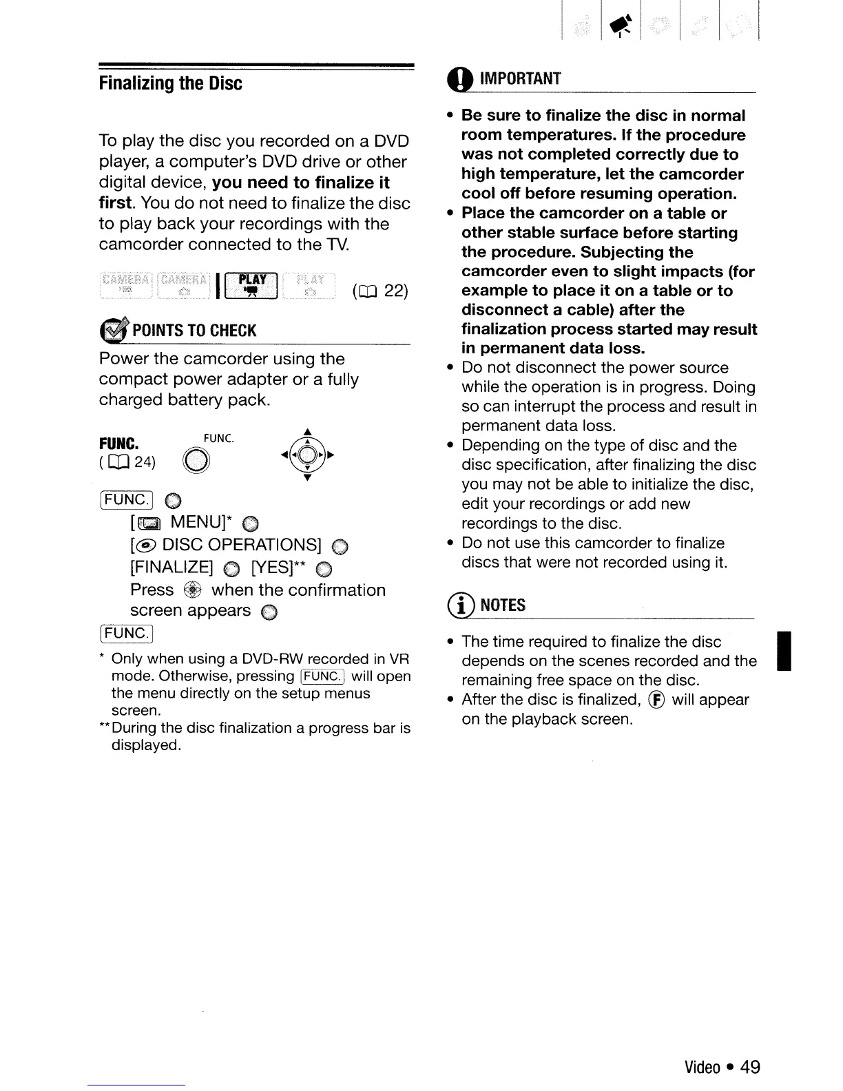 not use this camcorder to finalize