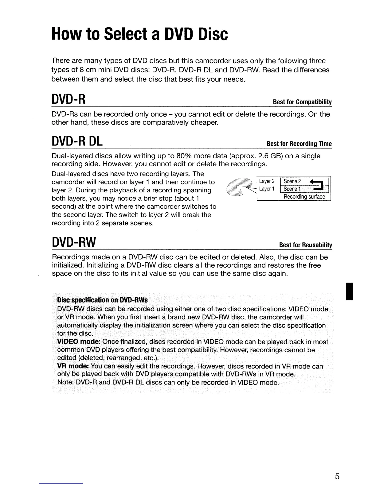 mini DVD discs: DVD-R, DVD-R DL and DVD-RW. Read the differences