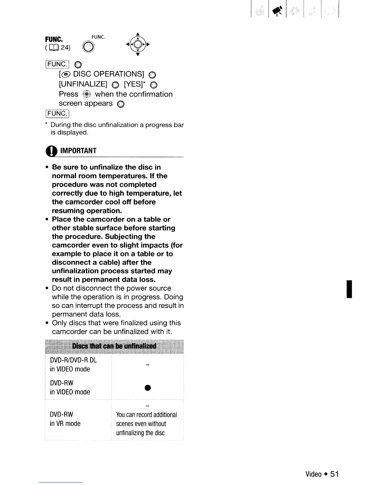 • Be sure to unfinalize the disc