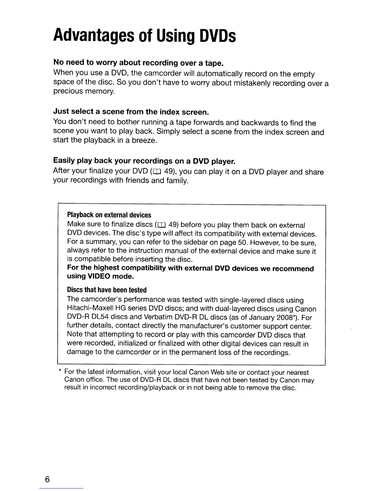 discs; and with dual-layered discs using Canon