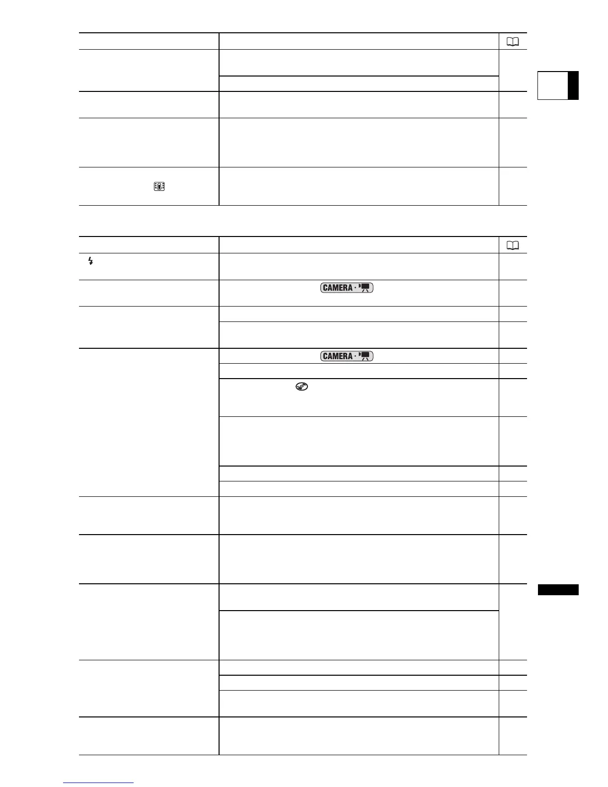 “ ” flashes red on the screen. The camcorder malfunctions. Consult a Canon Service