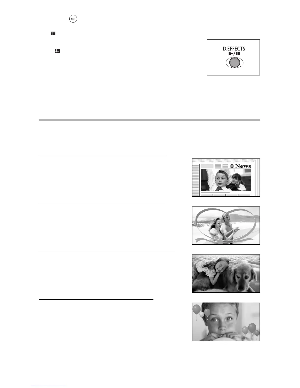 last image. Holding the D.EFFECTS button pressed down for more than 1 second