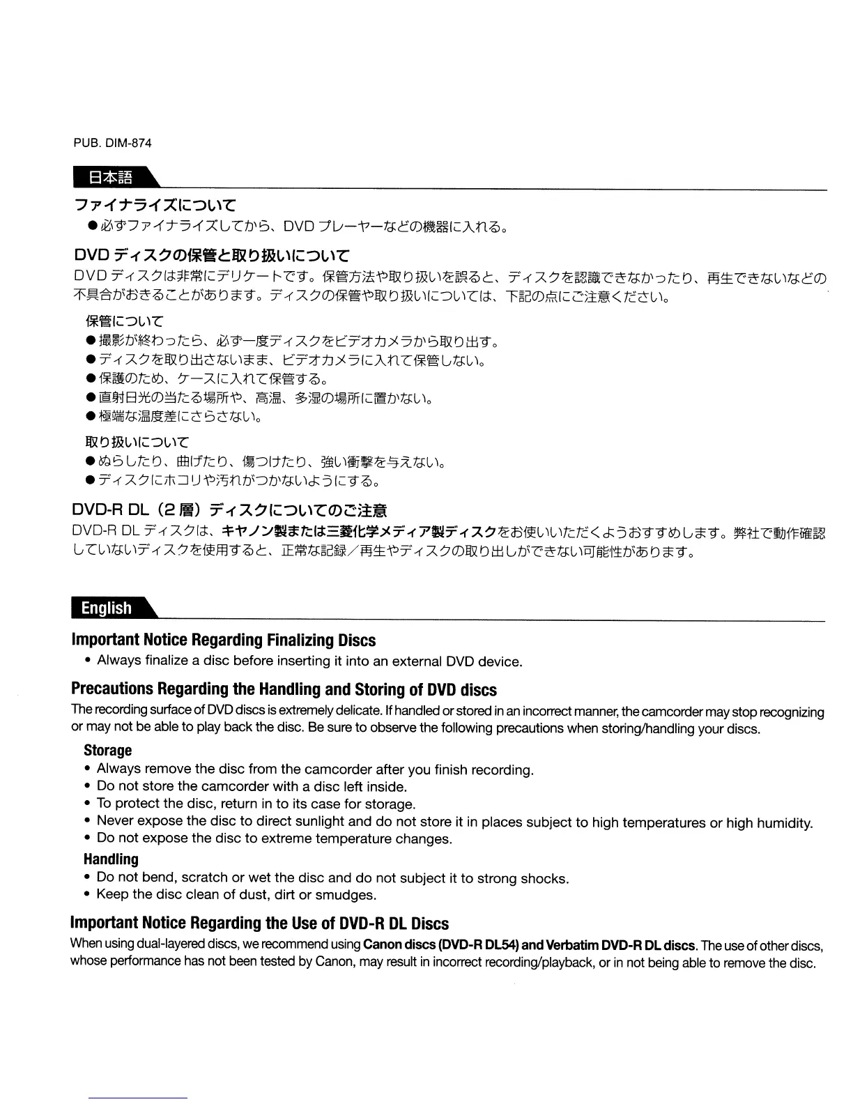 dual-layered discs, we recommend using Canon discs(DVD-R DL54) and Verbatim DVD-R DL discs.