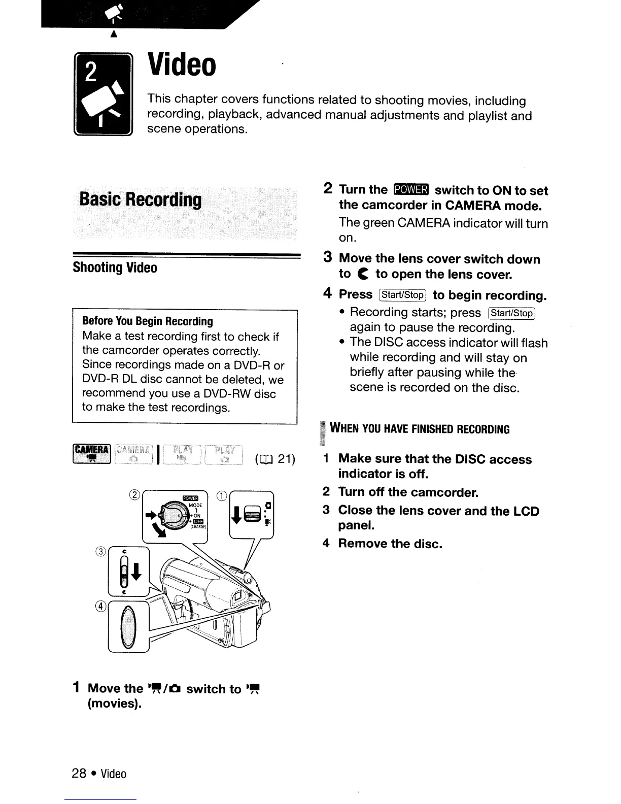 off the camcorder.