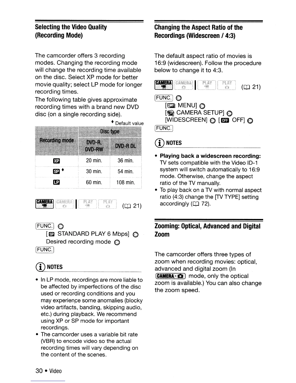 modes. Changing the recording