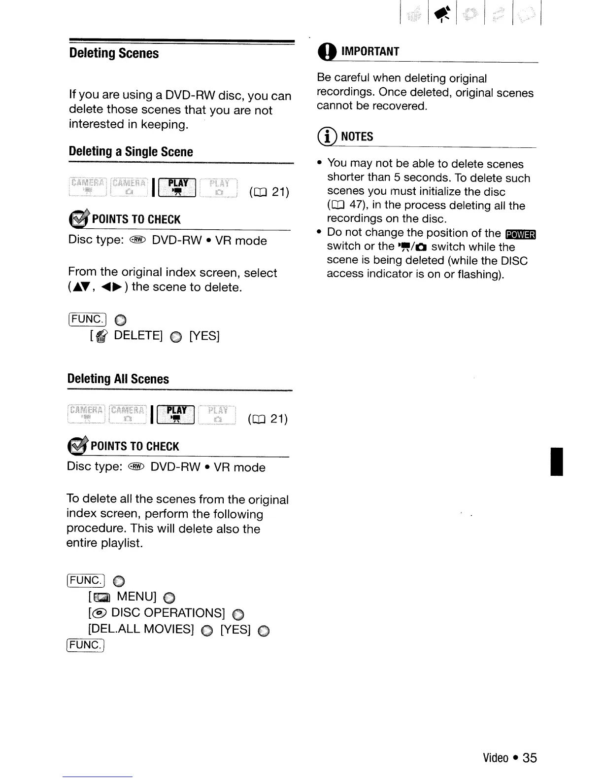 recordings. Once deleted, original scenes