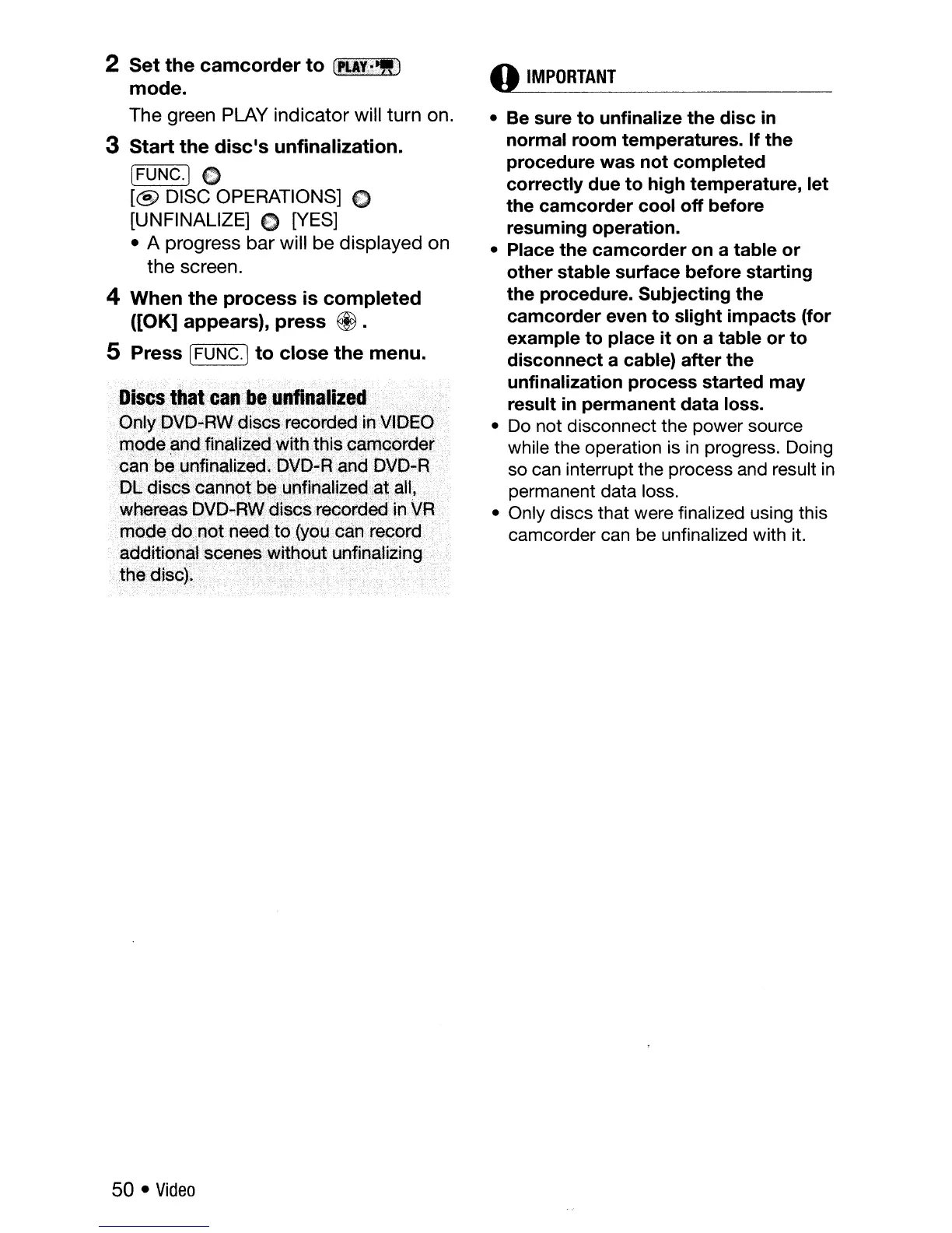 • Be sure to unfinalize the disc