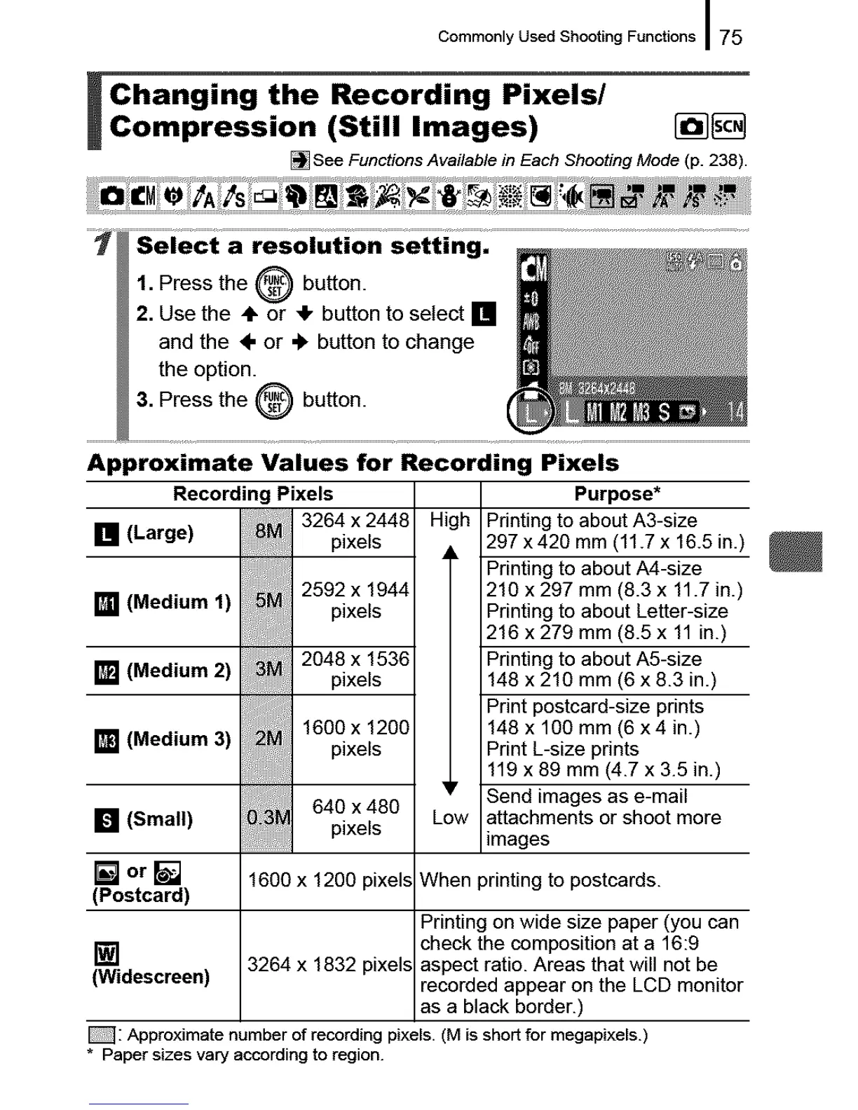 _: Approximate number of recording pixels. (M is short for megapixels.)