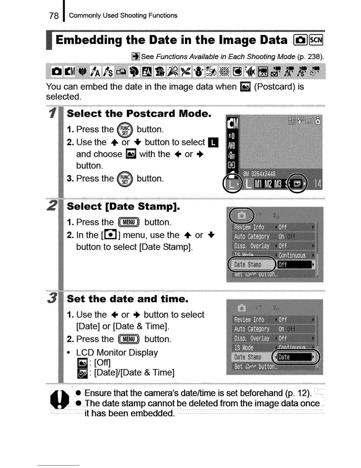 P • The date stamp cannot be deleted from the image data once