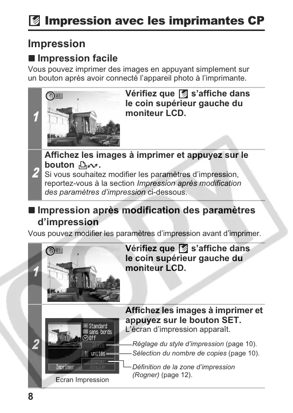 un bouton après avoir connecté l’appareil photo à l’imprimante.